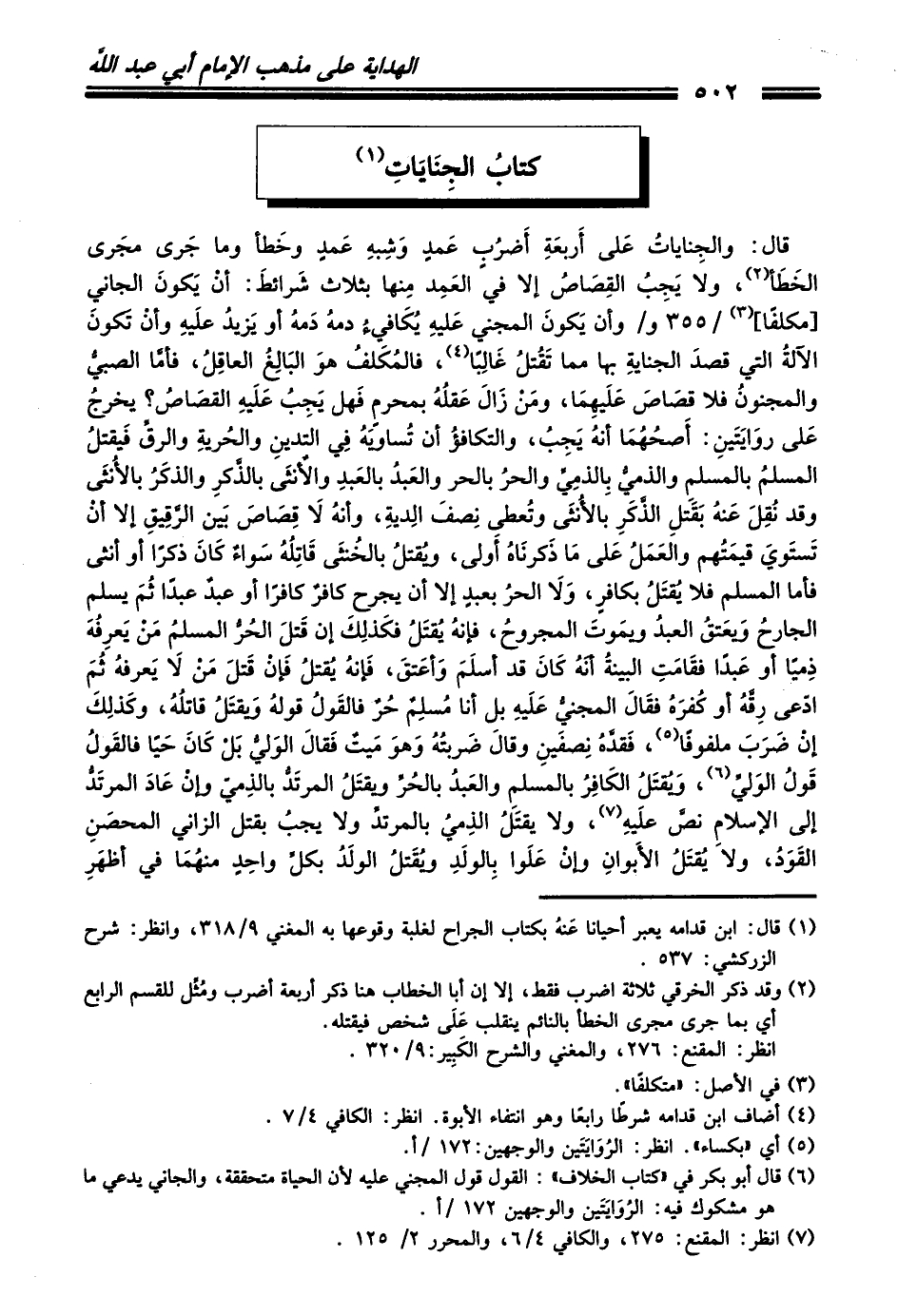 (¬1) قال: ابن قدامه يعبر أحيانا عَنهُ بكتاب الجراح لغلبة وقوعها به المغني 9/ 318، وانظر: شرح