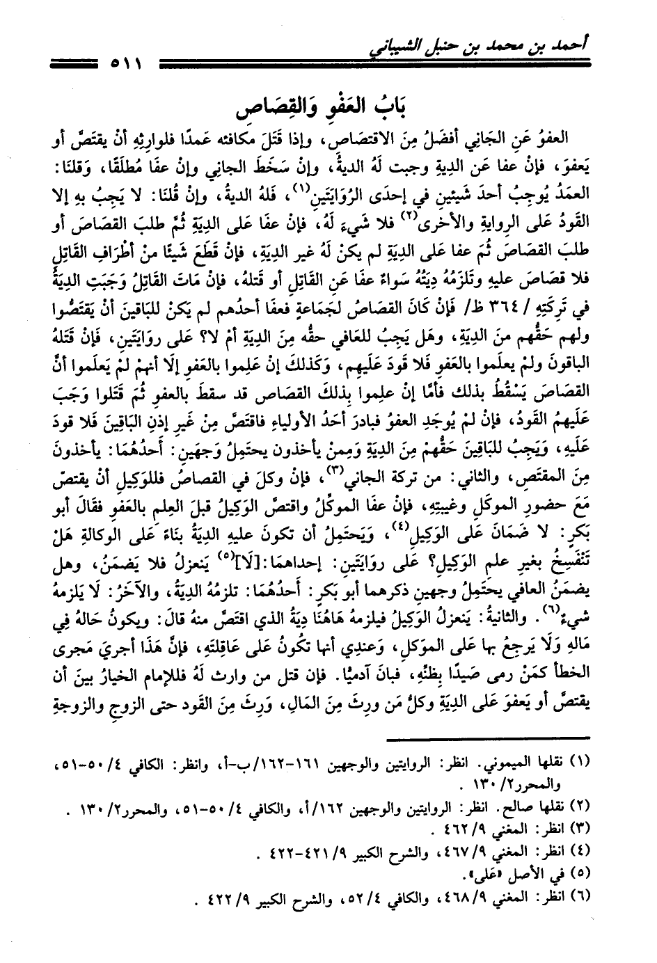 (¬6) انظر: المغني 9/ 468، والكافي 4/ 52، والشرح الكبير 9/ 422.