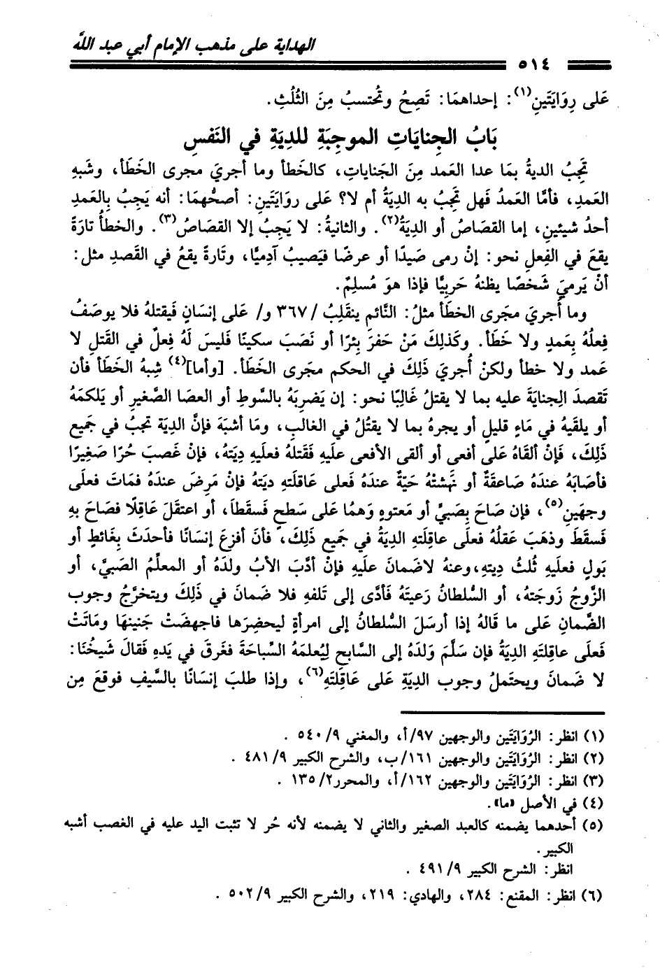 (¬6) انظر: المقنع: 284، والهادي: 219، والشرح الكبير 9/ 502.
