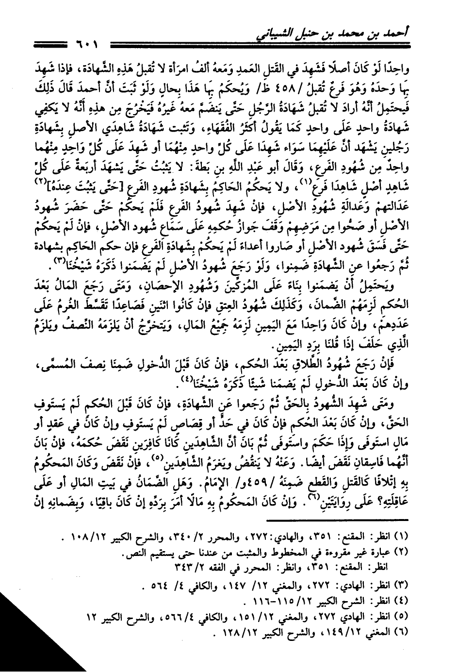 (¬5) انظر: الهادي 272، والمغني 12/ 151، والكافي 4/ 566، والشرح الكبير 12/ 126.