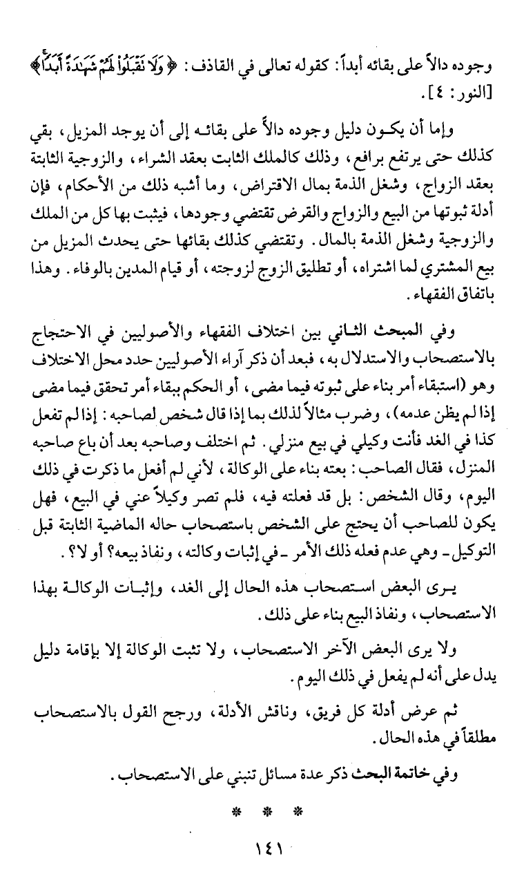 ثم عرض ادلة كل فريق، وناقش الأدلة، ورجح القول بالاستصحاب