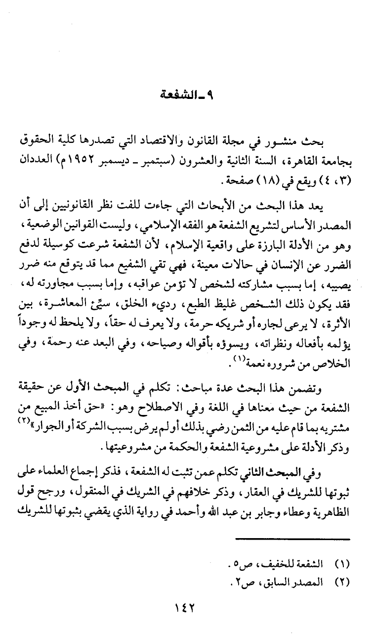 المصدر الأساس لتشريع الشفعة هو الفقه الإسلامي، وليست القوانين الوضعية،