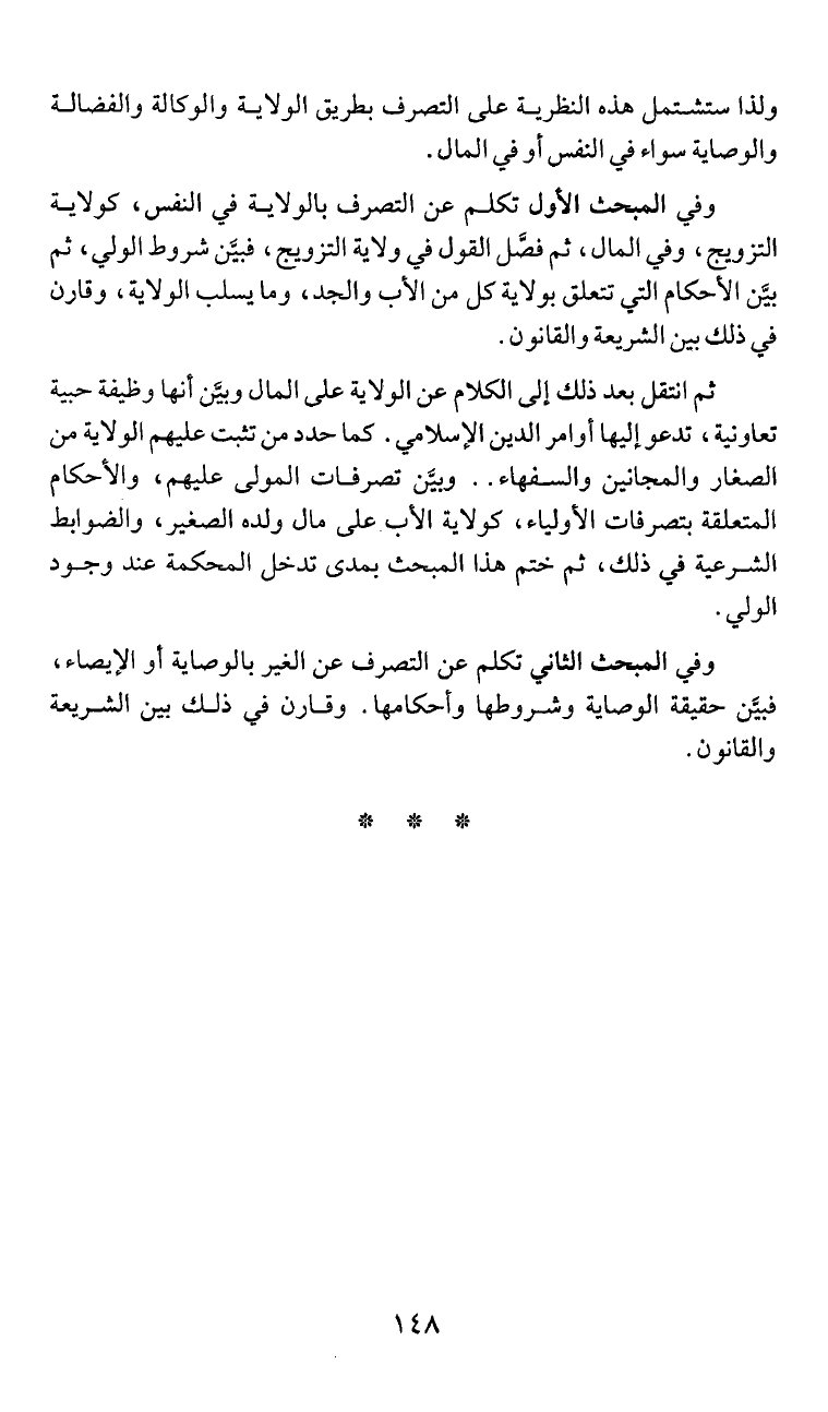 وفي المبحث الثاني تكلم عن التصرف عن الجر بالوصاية أو الإيصاء،