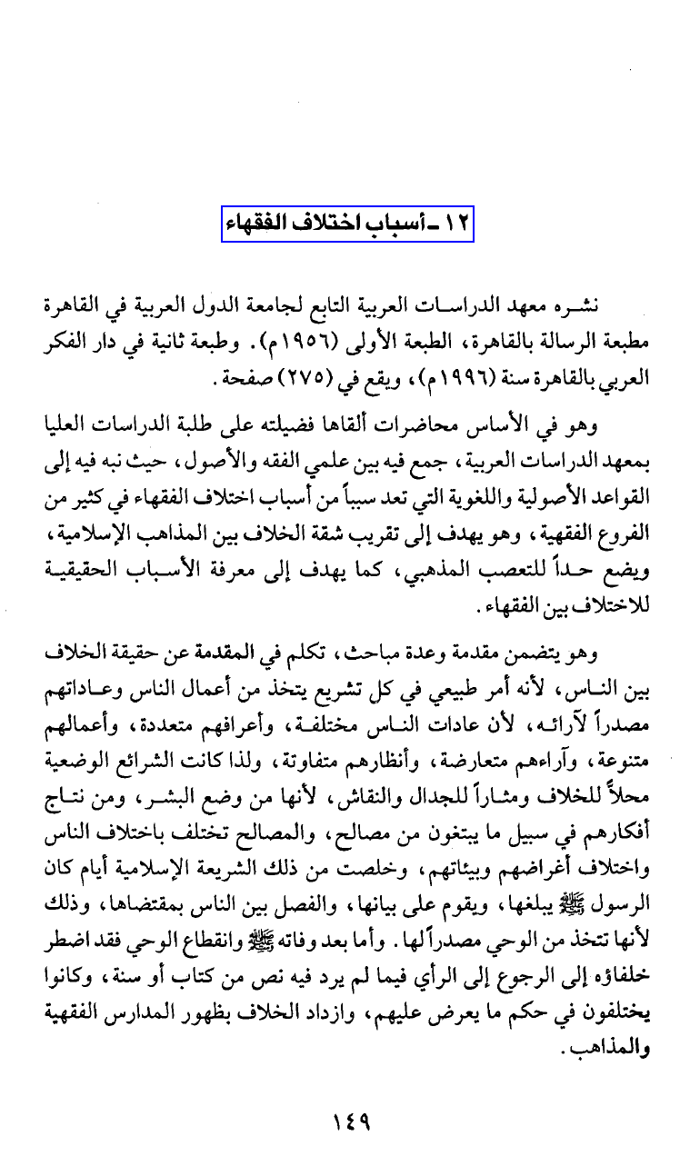 بمعهد الدراسات العربية، جمع فيه بين علمي الفقه والأصول، حيث نبه فيه إلى
