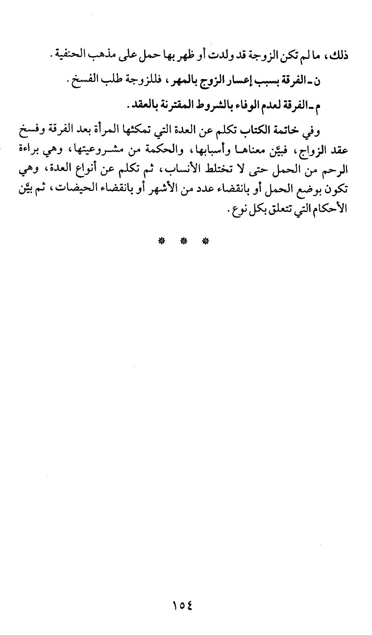 وفي خاتمة الكثاب تكلم عن العدة التي تمكثها المراة بعد الفرقة وفسخ