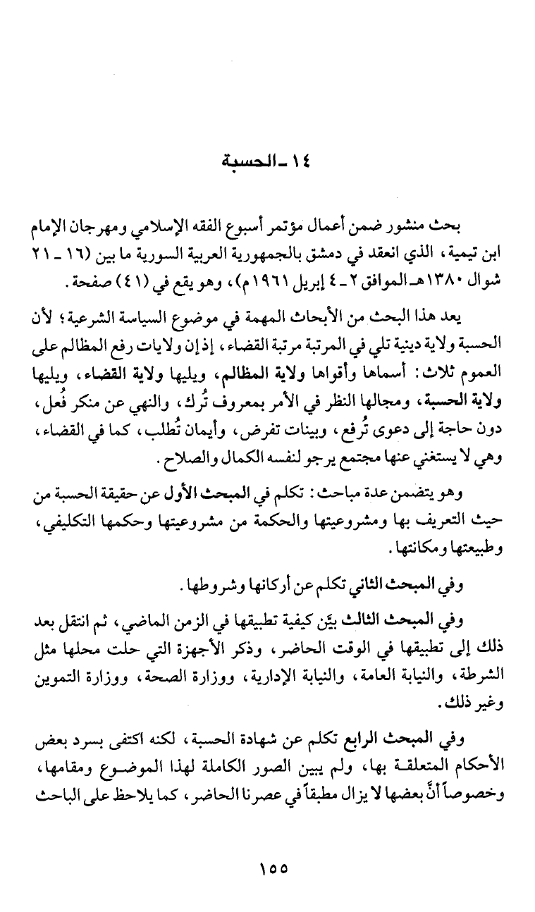 وهو يتضمن عدة مباحث: تكلم في المبحث الأول عن حقيقة الحسبة من