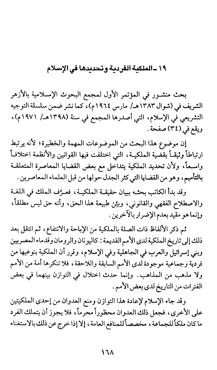 وبني إسرائيل والعرب في الجاهلية وفي الإسلام، وقرر ان الملكية بنوعيها من