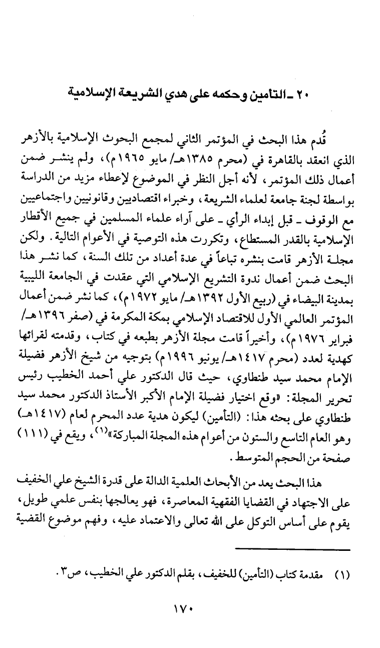 (1) مقدمة كتاب (التامين) للخفيف، بقلم الدكتور علي الخطيب، ص 3.