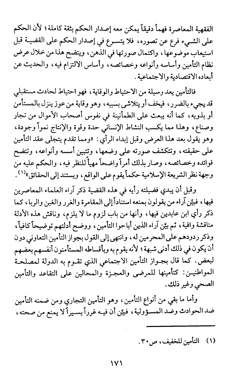 مناقشة وافية، ثم بئن آراء الذين اباحوا التأمين، ووضح ادلتهم توضيحاً كإفياً،