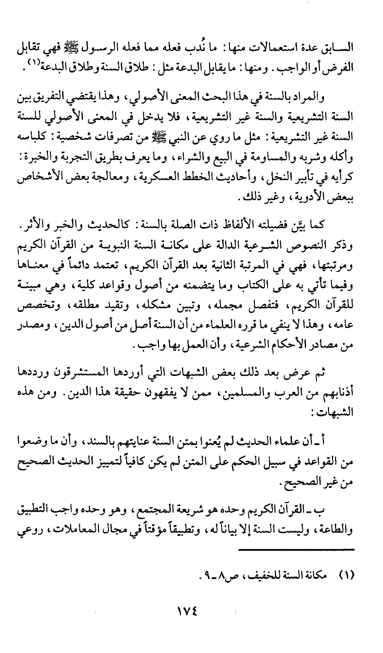 (1) مكانة السنة للخفيف، ص 8 - 9.
