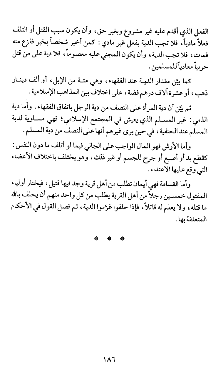 كما بئن مقدار الدية عند الفقهاء، وهي مئة من الإبل، او ألف دينار