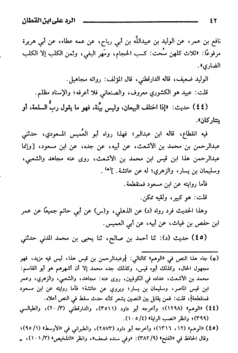 (44) حَدِيث: " إِذا اخْتلف البيعان، وَلَيْسَ بَيِّنَة، فَهُوَ مَا يَقُول رب السّلْعَة، أَو