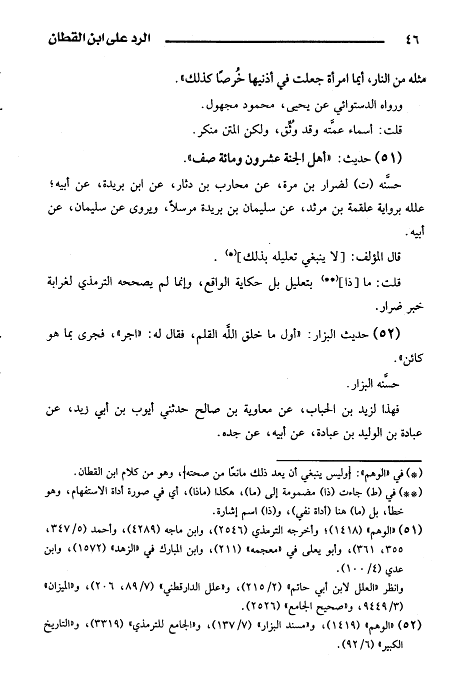 (51) حَدِيث: " أهل الْجنَّة عشرُون وَمِائَة صف ".