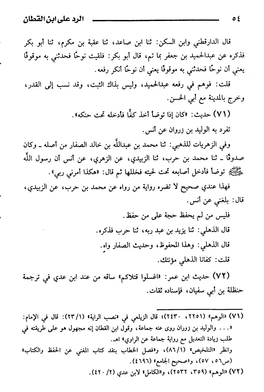 (71) حَدِيث: " كَان إِذا تَوَضَّأ أَخذ كفا فَأدْخلهُ تَحت حنكه ".