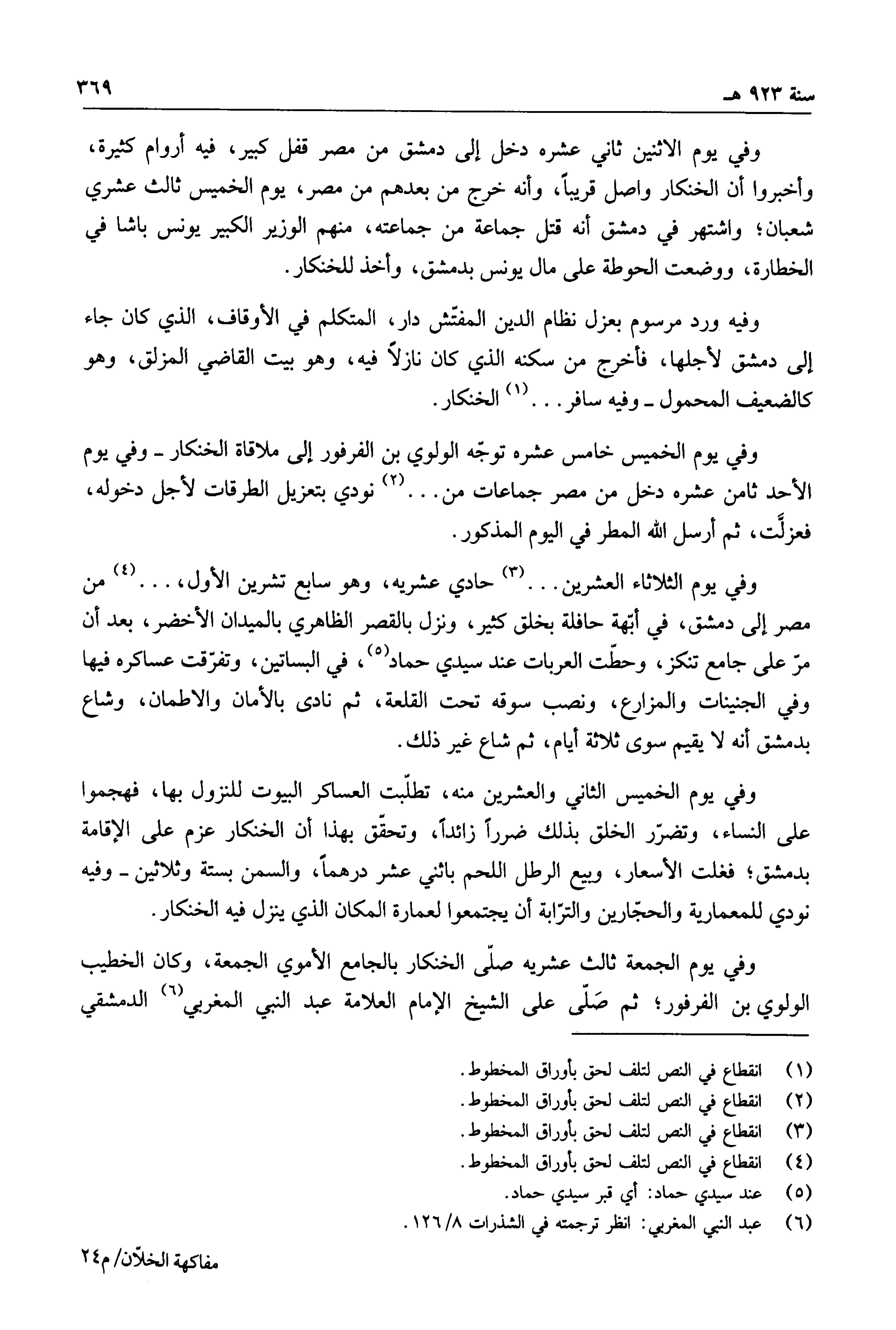 وفي يوم الجمعة ثالث عشريه صلى الخنكار بالجامع الأموي الجمعة، وكان الخطيب الولوي بن الفرفور؛ ثم صلي على الشيخ الإمام العلامة عبد النبي المغربي الدمشقي
