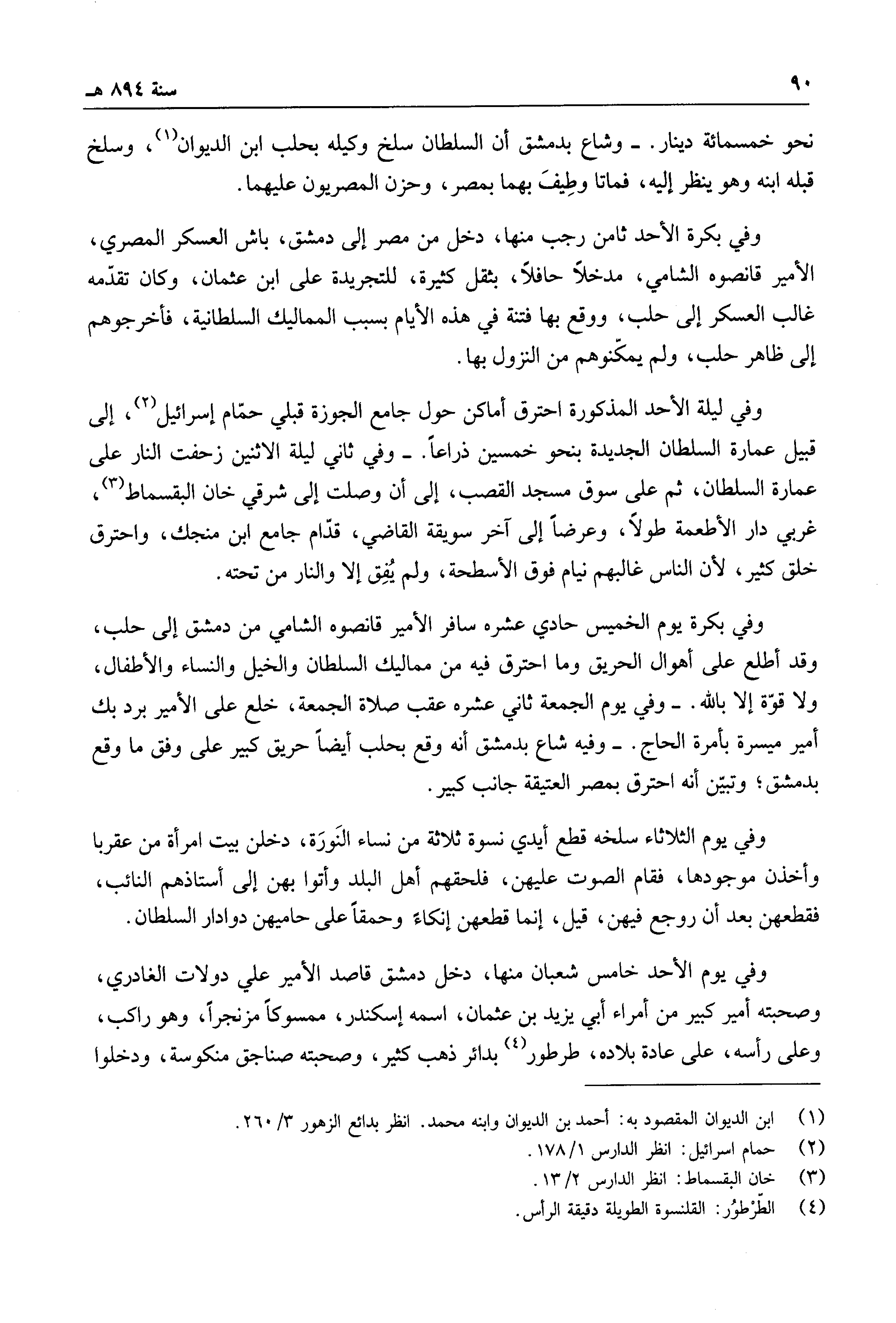 وفي بكرة الأحد ثامن رجب منها، دخل من مصر إلى دمشق، باش العسكر المصري، الأمير قانصوه الشامي، مدخلاً حافلاً، بثقل كثيرة، للتجريدة على ابن عثمان، وكان تقدمه غالب العسكر إلى حلب، ووقع بها فتنة في هذه الأيام بسبب المماليك السلطانية، فأخرجوهم إلى ظاهر حلب، ولم يمكنوهم من النزول بها.