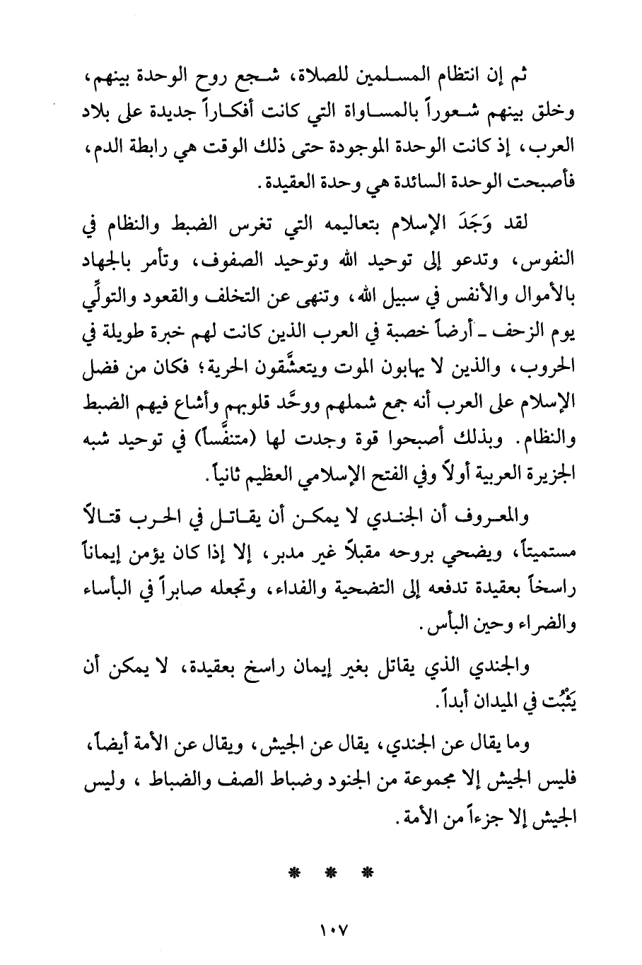 والجندي الذي يقاتل بغير إيمان راسخ بعقيدة، لا يمكن أن يَثْبُت في الميدان أبداً.