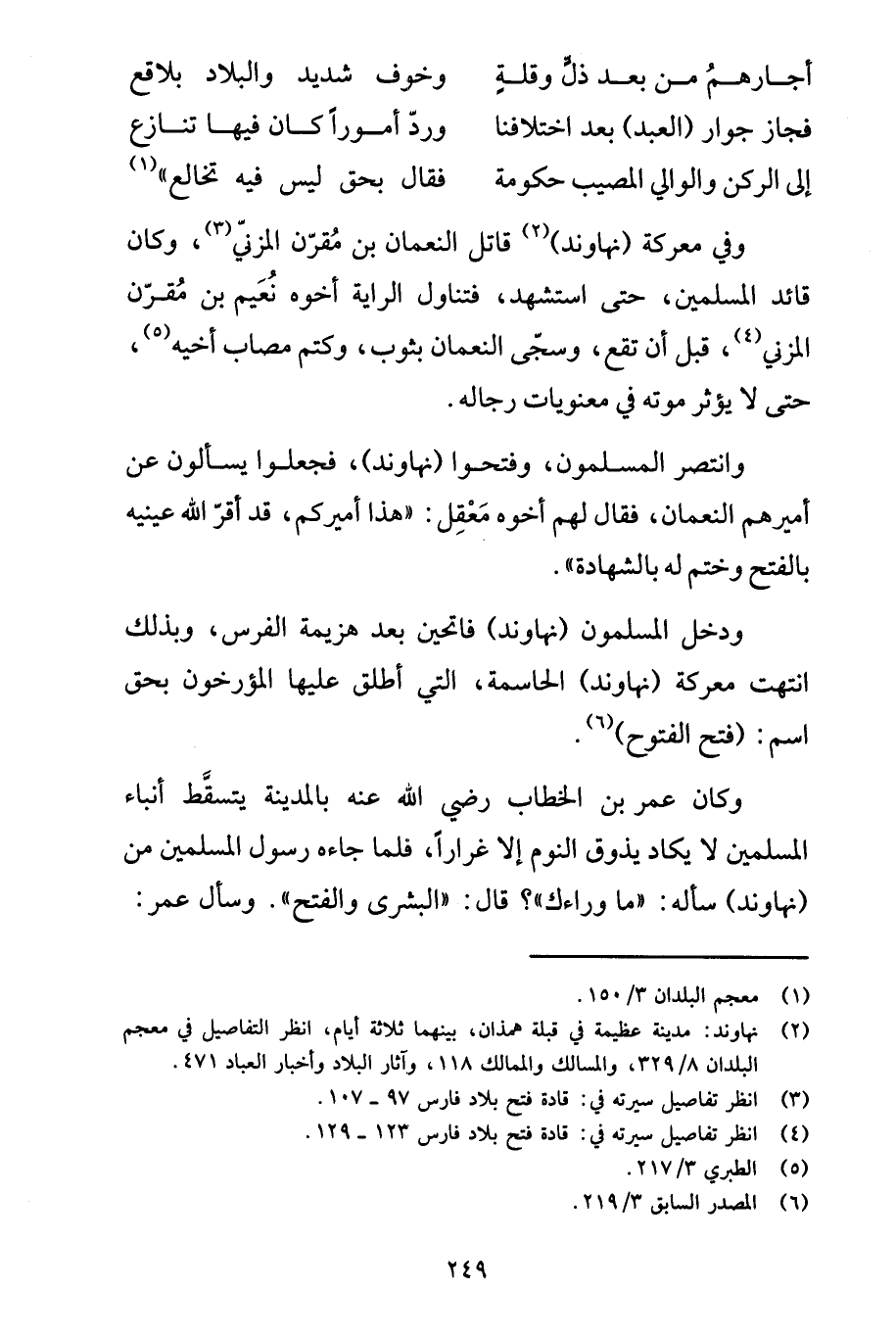 (2) نهاوند: مدينة عظيمة في قبلة همذان، بينهما ثلاثة أيام، انظر التفاصيل في معجم البلدان 8/ 329، والمسالك والممالك 118، وآثار البلاد وأخبار العباد 471.