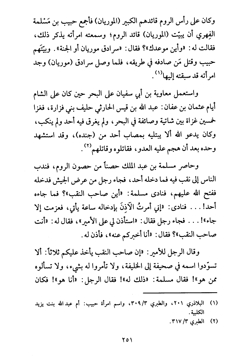 (1) البلاذري 201، والطبري 3/ 309، واسم امرأة حبيب: أم عبد الله بنت يزيد