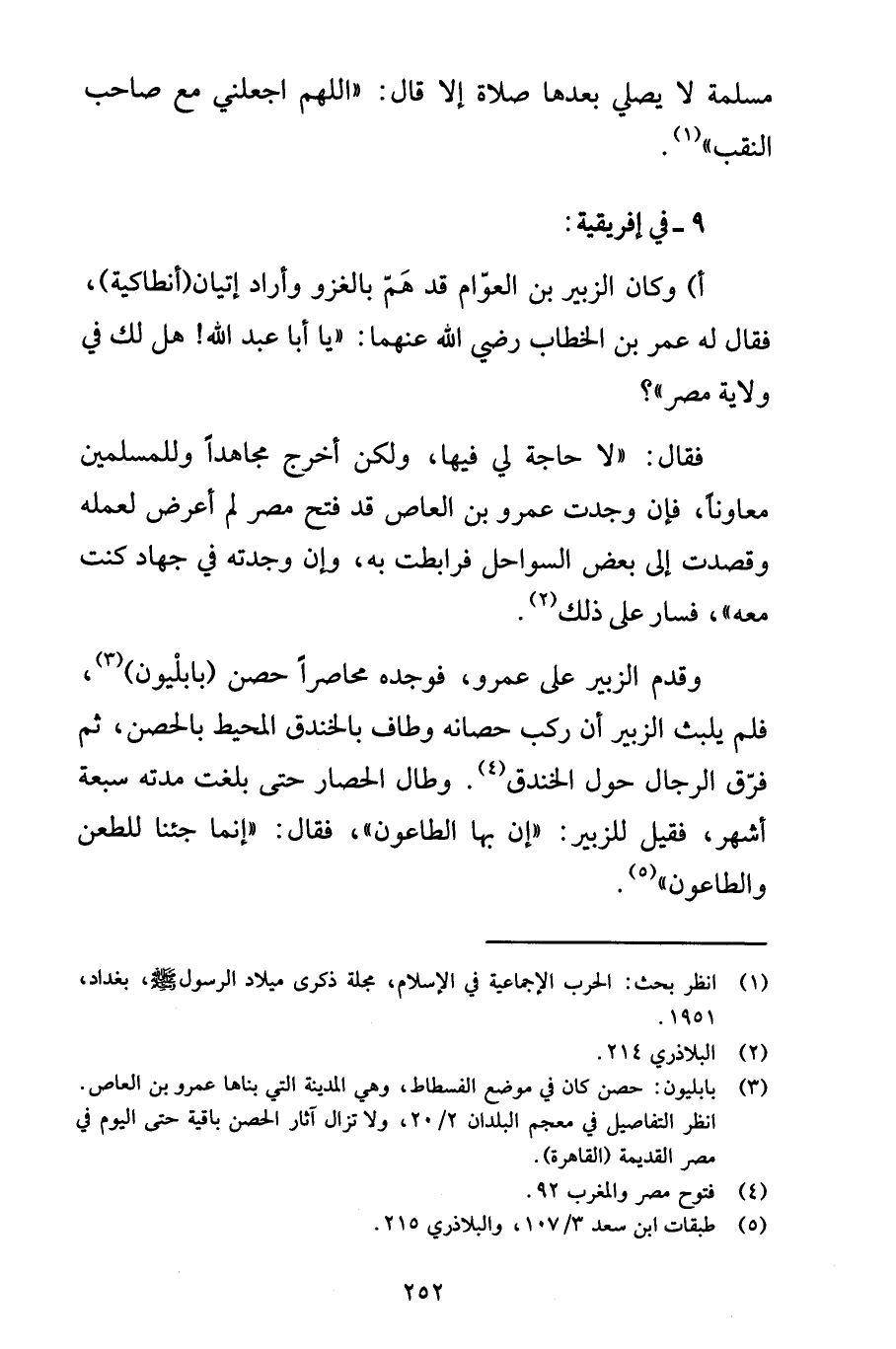 أ) وكان الزبير بن العوّام قد هَمّ بالغزو وأراد إتيان (أنطاكية)، فقال له عمر بن الخطاب - رضي الله عنهما -: "يا أبا عبد الله! هل لك في ولاية مصر"؟ فقال: "لا حاجة لي فيها، ولكن أخرج مجاهداً وللمسلمين معاوناً، فإن وجدت عمرو بن العاص قد فتح مصر لم أعرض لعمله وقصدت إلى بعض السواحل فرابطت به، وإن وجدته في جهاد كنت معه"، فسار على ذلك (2).
