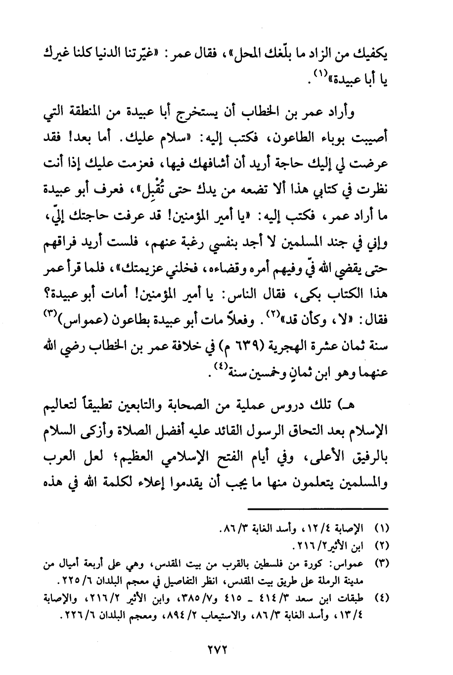 هـ) تلك دروس عملية من الصحابة والتابعين تطبيقاً لتعاليم الإسلام بعد التحاق الرسول القائد عليه أفضل الصلاة وأزكى السلام بالرفيق الأعلى، وفي أيام الفتح الإسلامي العظيم؛ لعل العرب والمسلمين يتعلمون منها ما يجب أن يقدموا إعلاء لكلمة الله في هذه