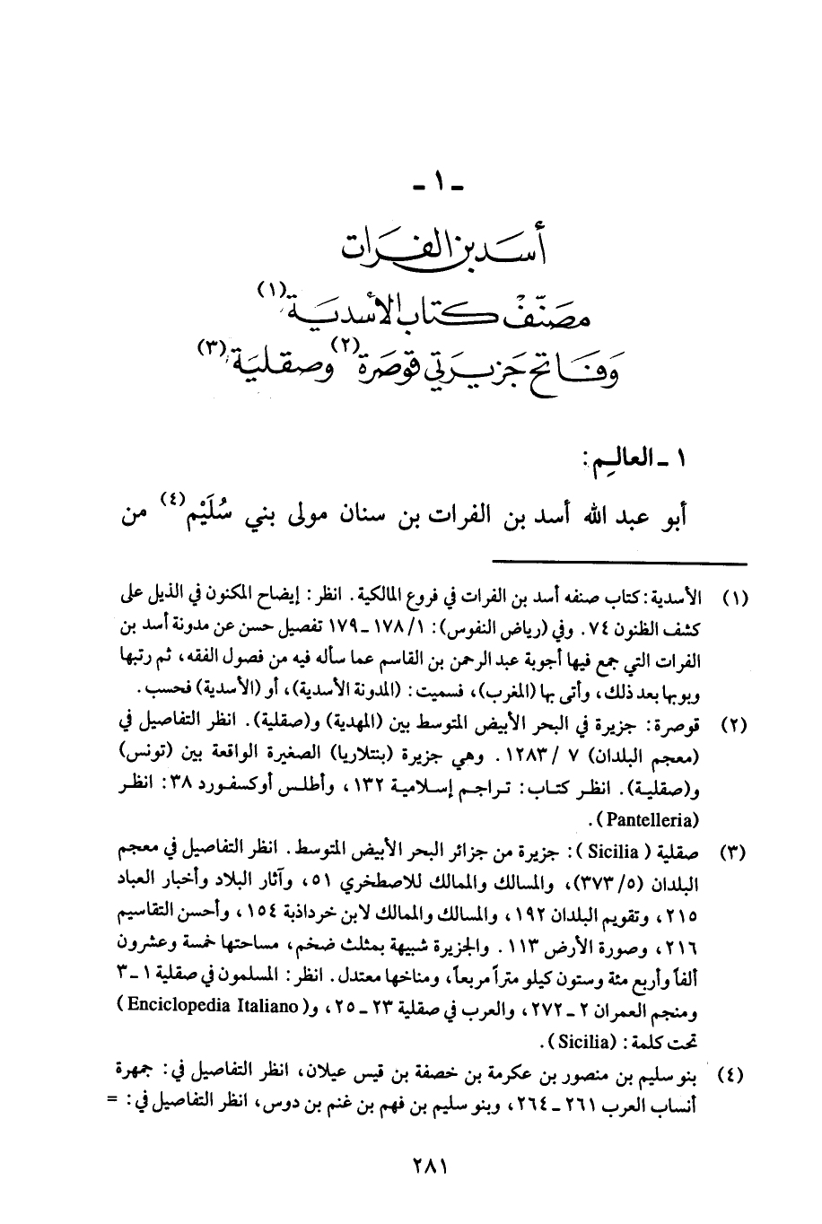 أسَد بن الفرَات مصَنّفْ كتاب الأسديَة (1) وَفَاتح جَزيرَتي قوصَرة (2) وصقليَة (3)