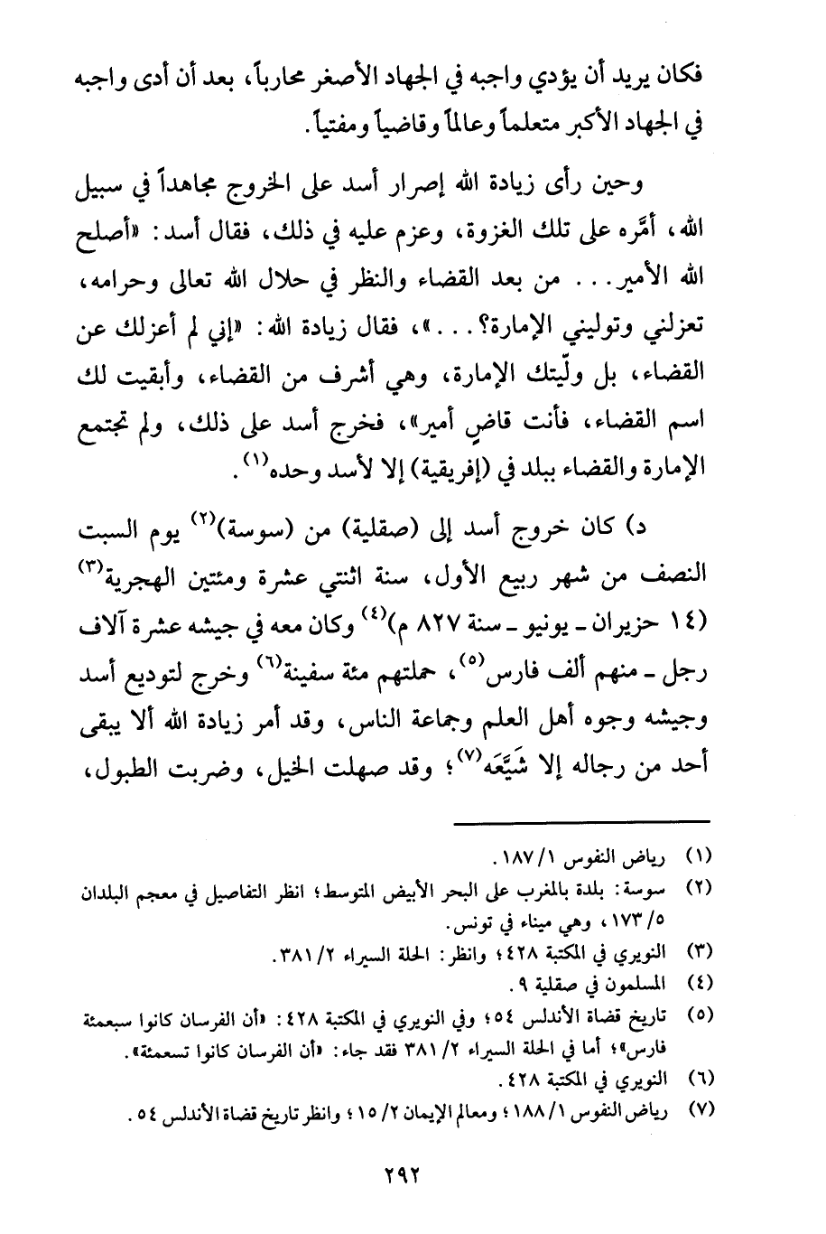 (7) رياض النفوس 1/ 188؛ ومعالم الإيمان 2/ 15؛ وانظر تاريخ قضاة الأندلس 54.