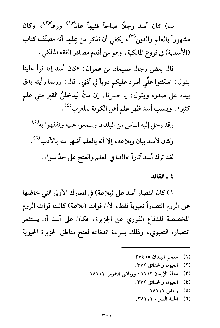 ب) كان أسد رجلاً صالحاً فقيهاً عالماً (1) ورعاً (2)، وكان مشهوراً بالعلم والدين (3)، يكفي أن نذكر من عِلمِه أنه مصنّف كتاب (الأسدية) في فروع المالكية، وهو من أقدم مصادر الفقه المالكي.