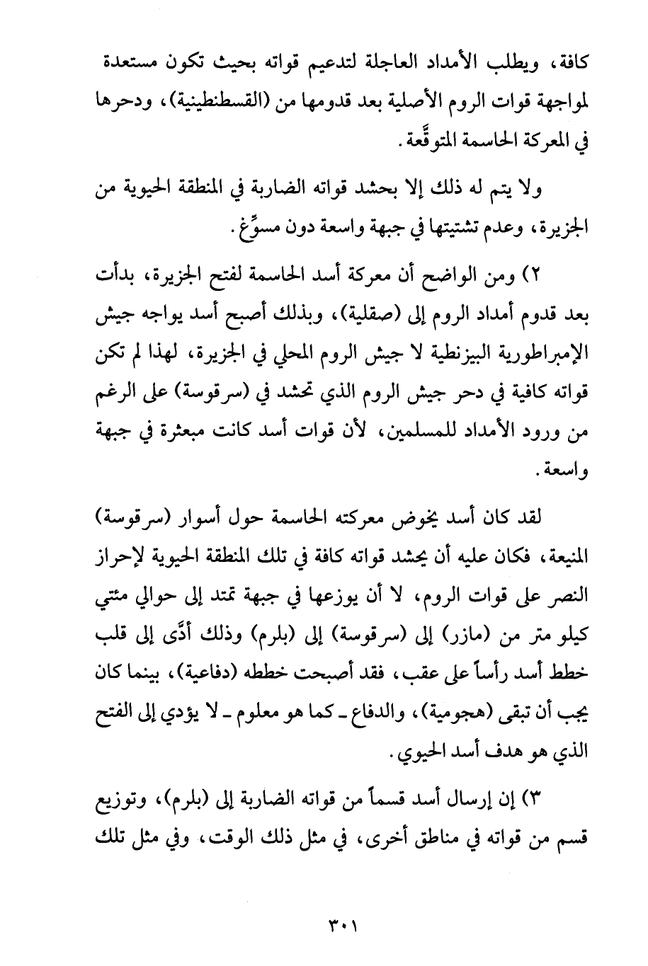 ولا يتم له ذلك إلا بحشد قواته الضاربة في المنطقة الحيوية من الجزيرة، وعدم تشتيتها في جبهة واسعة دون مسوِّغ.