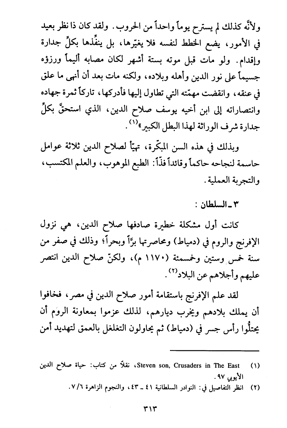 (1) Steven son, Crusaders in The East، نقلاً من كتاب: حياة صلاح الدين الأيوبي 97.