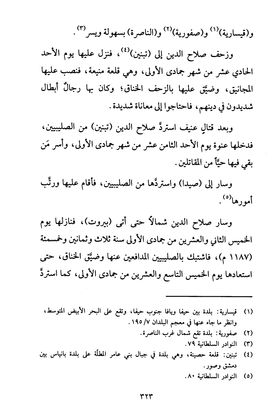 (4) تبنين: قلعة حصينة، وهي بلدة في جبال بني عامر المطلَّة على بلدة بانياس بين دمشق وصور.
