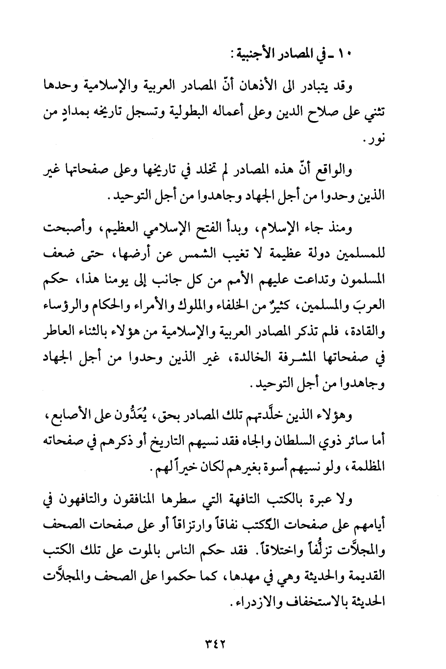 ولا عبرة بالكتب التافهة التي سطرها المنافقون والتافهون في أيامهم على صفحات الكتب نفاقاً وارتزاقاً أو على صفحات الصحف والمجلاَّت تزلُّفاً واختلاقاً. فقد حكم الناس بالموت على تلك الكتب القديمة والحديثة وهي في مهدها، كما حكموا على الصحف والمجلاَّت الحديثة بالاستخفاف والازدراء.