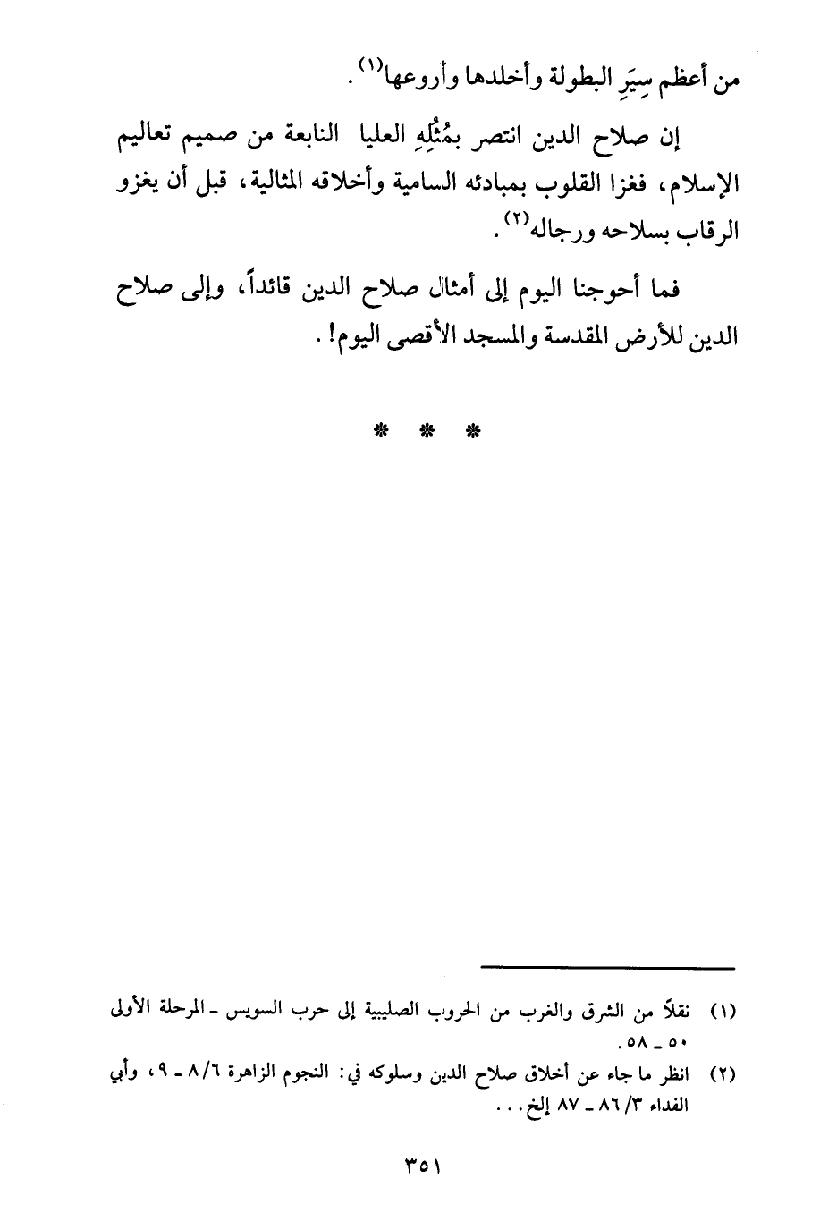 (2) انظر ما جاء عن أخلاق صلاح الدين وسلوكه في: النجوم الزاهرة 6/ 8 - 9، وأبي الفداء 3/ 86 - 87 إلخ ...