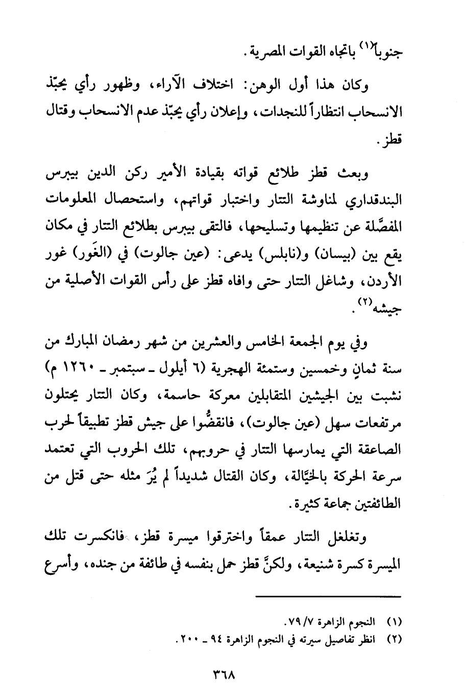 وبعث قطز طلائع قواته بقيادة الأمير ركن الدين بيبرس البندقداري لمناوشة التتار واختبار قواتهم، واستحصال المعلومات المفصَّلة عن تنظيمها وتسليحها، فالتقى بيبرس بطلائع التتار في مكان يقع بين (بيسان) و (نابلس) يدعى: (عين جالوت) في (الغَور) غور الأردن، وشاغل التتار حتى وافاه قطز على رأس القوات الأصلية من جيشه (2).
