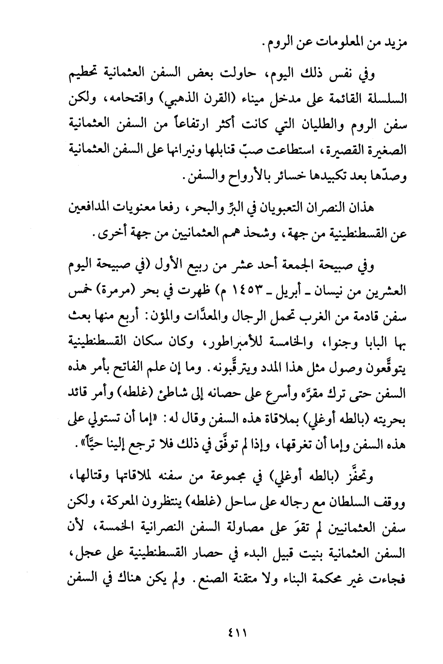 وتحفَّز (بالطه أوغلي) في مجموعة من سفنه لملاقاتها وقتالها، ووقف السلطان مع رجاله على ساحل (غلطه) ينتظرون المعركة، ولكن سفن العثمانيين لم تقوَ على مصاولة السفن النصرانية الخمسة، لأن السفن العثمانية بنيت قبيل البدء في حصار القسطنطينية على عجل، فجاءت غير محكمة البناء ولا متقنة الصنع. ولم يكن هناك في السفن