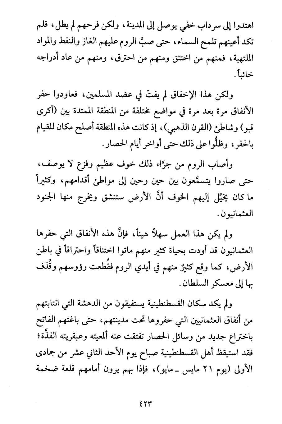 ولكن هذا الإخفاق لم يفتّ في عضد المسلمين، فعاودوا حفر الأنفاق مرة بعد مرة في مواضع مختلفة من المنطقة الممتدة بين (أكرى قبو) وشاطئ (القرن الذهبي)، إذ كانت هذه المنطقة أصلح مكان للقيام بالحفر، وظلُّوا على ذلك حتى أواخر أيام الحصار.