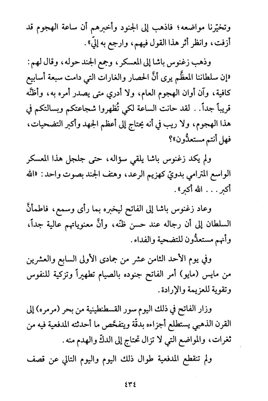 ولم يكد زغنوس باشا يلقي سؤاله، حتى جلجل هذا المعسكر الواسع المترامي بدويّ كهزيم الرعد، وهتف الجند بصوت واحد: "الله أكبر ... الله أكبر".