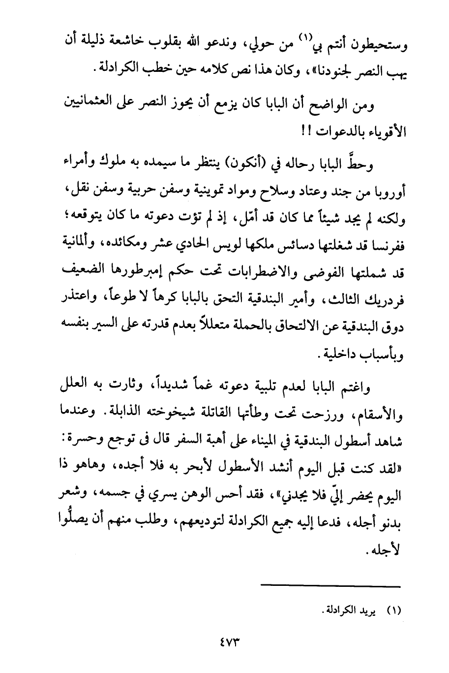 وستحيطون أنتم بي (1) من حولي، وندعو الله بقلوب خاشعة ذليلة أن يهب النصر لجنودنا"، وكان هذا نص كلامه حين خطب الكرادلة.