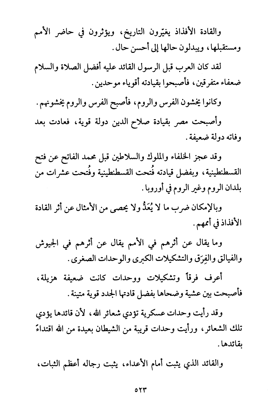 وما يقال عن أثرهم في الأمم يقال عن أثرهم في الجيوش والفيالق والفِرَق والتشكيلات الكبرى والوحدات الصغرى.