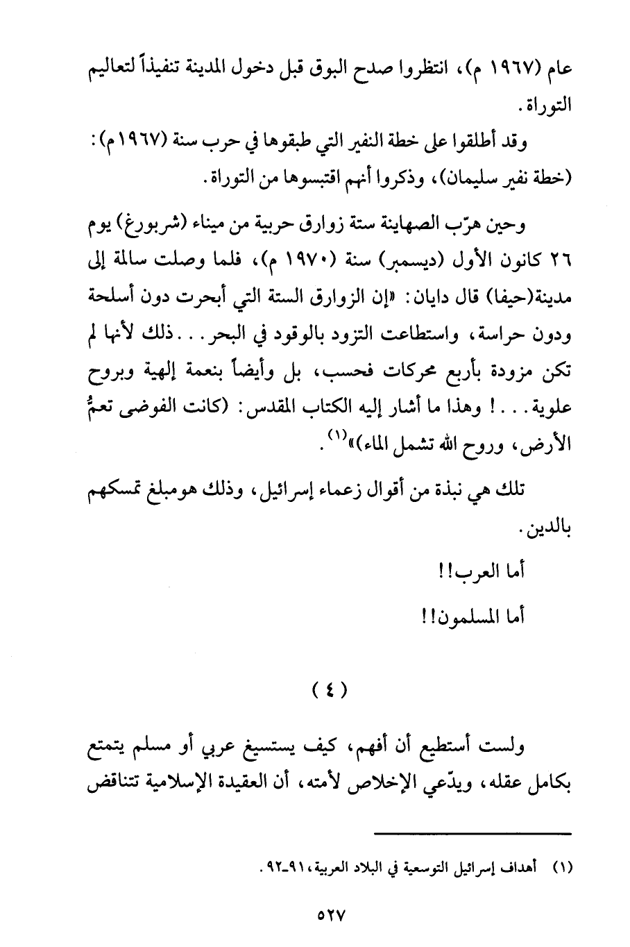 (1) أهداف إسرائيل التوسعية في البلاد العربية، 91 - 92.