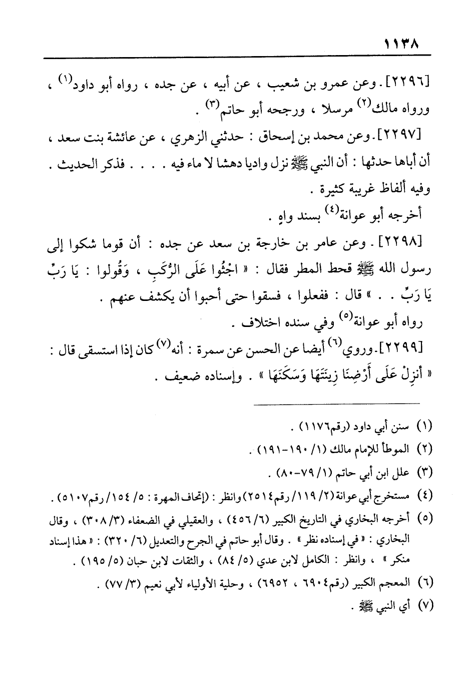 [2298]- وعن عامر بن خارجة بن سعد عن جده: أن قوما شكوا إلى رسول الله - صلى الله عليه وسلم - قحط المطر فقال: "اجْثُوا عَلَى الرُّكَبِ، وَقُولوا: يَا رَبِّ يَا رَبِّ .. " قال: ففعلوا، فسقوا حتى أحبوا أن يكشف عنهم.