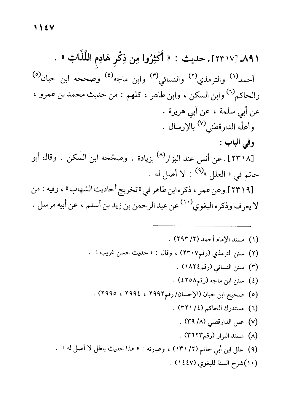 891 - [2317]-حديث: "أَكثِرُوا مِن ذِكْرِ هَادِمِ اللَّذَّاتِ".