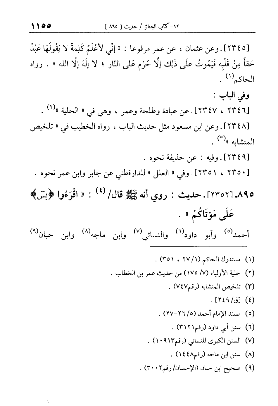 895 - [2352]- حديث: روي أنه - صلي الله عليه وسلم - قال/ (¬4): "اقْرَءُوا {يس} عَلَى مَوْتَاكُمْ".