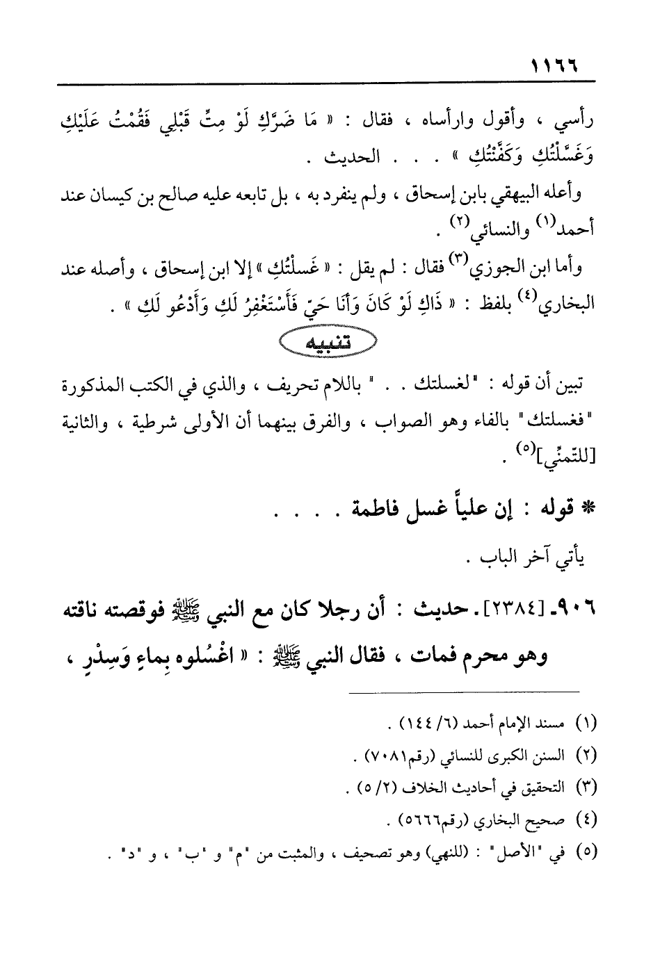 تبين أن قوله: "لغسلتك .. " باللام تحريف، والذي في الكتب المذكورة "فغسلتك" بالفاء وهو الصواب، والفرق بينهما أن الأولى شرطية، والثانية [للّتمُني] (¬5).