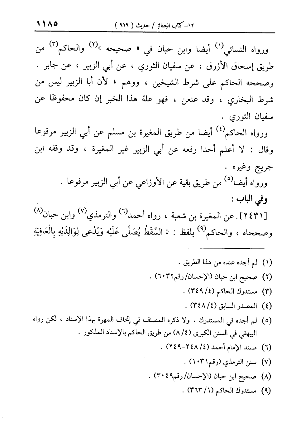 ورواه النسائي (¬1) أيضاً وابن حبان في "صحيحه" (¬2) والحاكم (¬3) من طريق إسحاق الأزرق، عن سفيان الثوري، عن أبي الزبير، عن جابر.