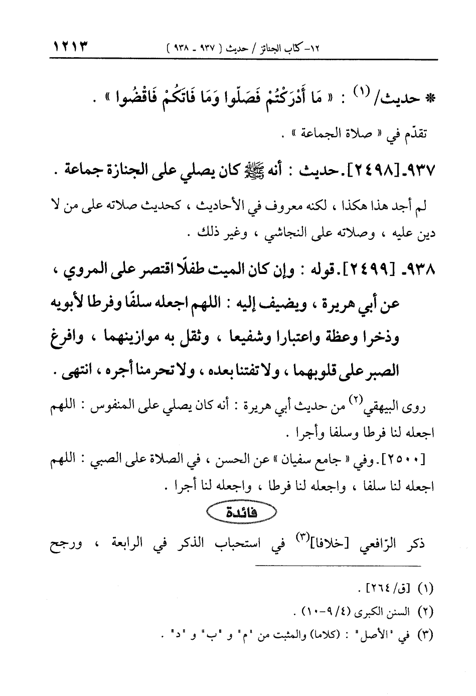 937 - [2498]- حديث: أنه - صلى الله عليه وسلم - كان يصلي على الجنازة جماعة.