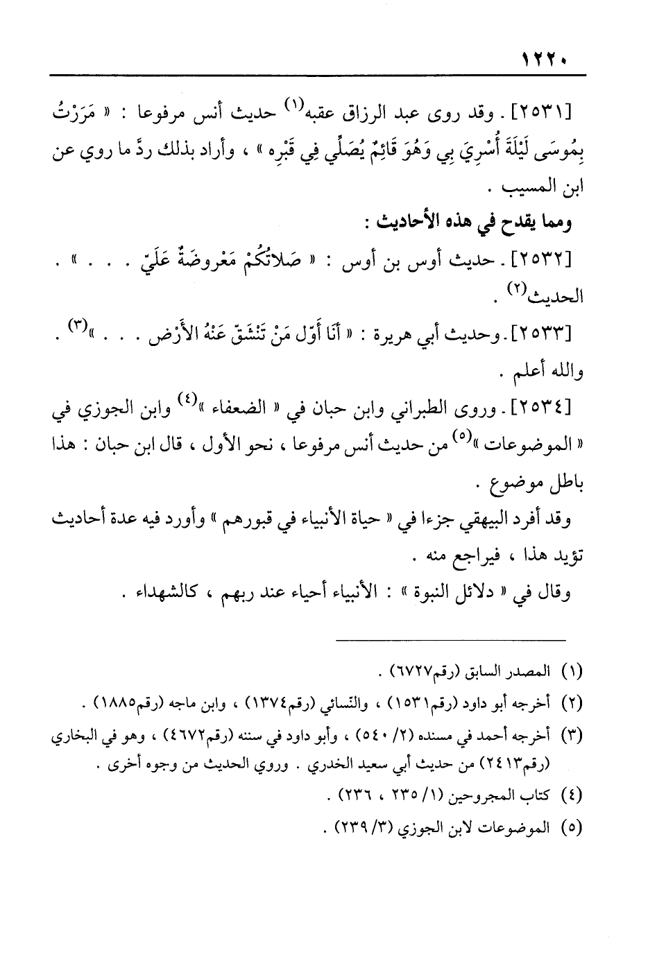 وقد أفرد البيهقي جزءا في "حياة الأنبياء في قبورهم" وأورد فيه عدة أحاديث تؤيد هذا، فيراجع منه.