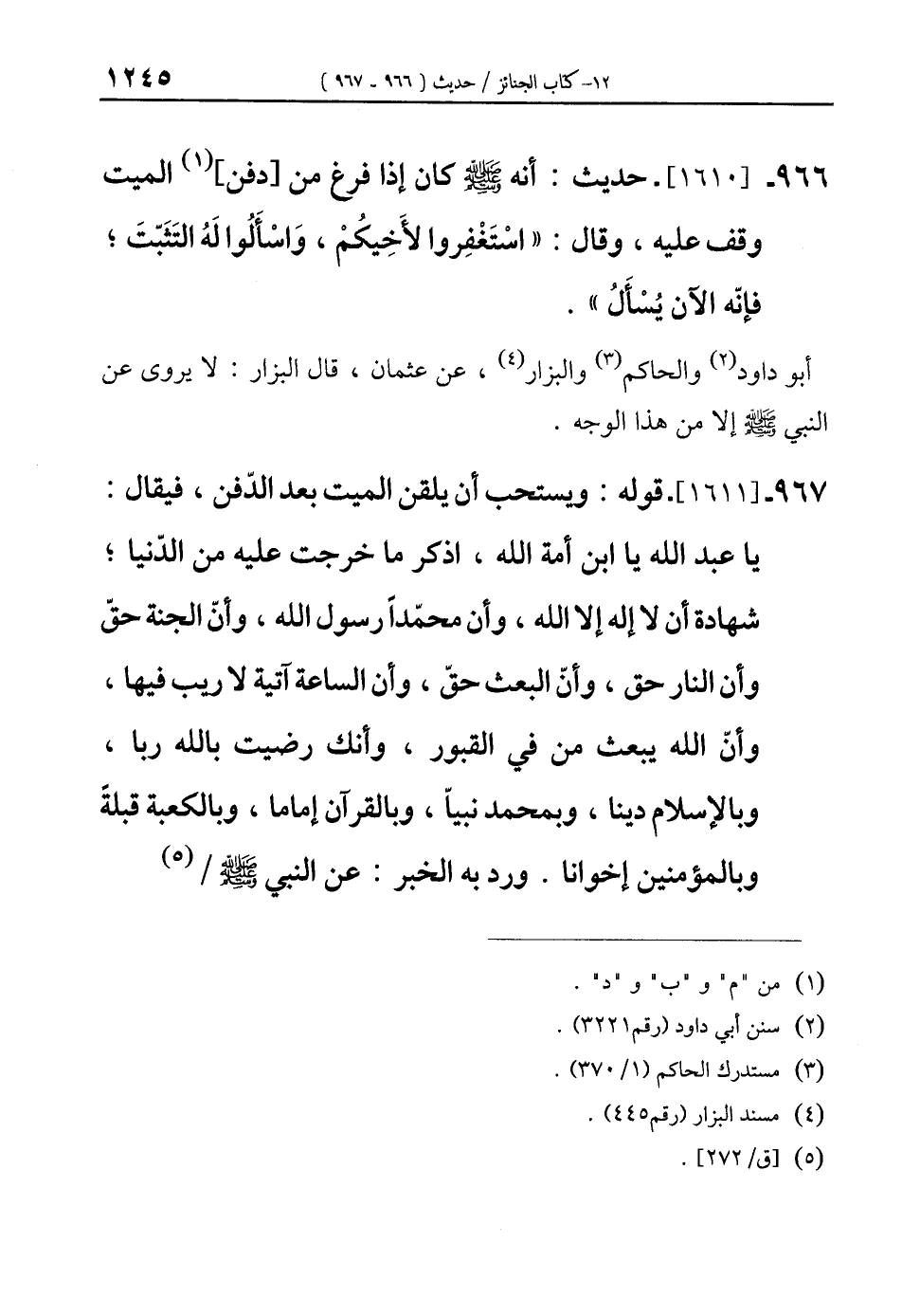 966 - [1610]- حديث: أنه - صلى الله عليه وسلم - كان إذا فرغ من [دفن] (¬1) الميت وقف عليه، وقال: "اسْتَغْفِروا لأَخِيكمْ، وَاسْأَلُوا لَهُ التَثَبّتَ؛ فإنّه الآن يُسْأَلُ".