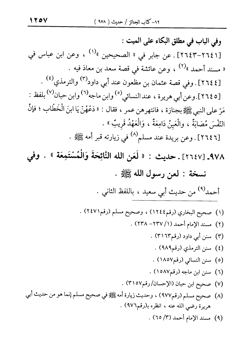 978 - [2647]- حديث: "لَعَن الله النَّائِحَةَ وَالْمُسْتَمِعَة". وفي نسخة: لعن رسول الله-صلى الله عليه وسلم-.