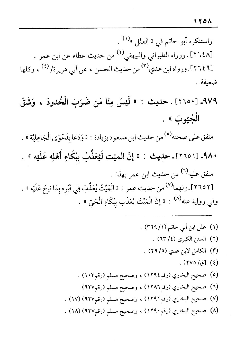 979 - [2650]- حديث: "لَيسَ مِنّا مَن ضَرَبَ الْخُدودَ، وَشَقّ الْجُيُوبَ".